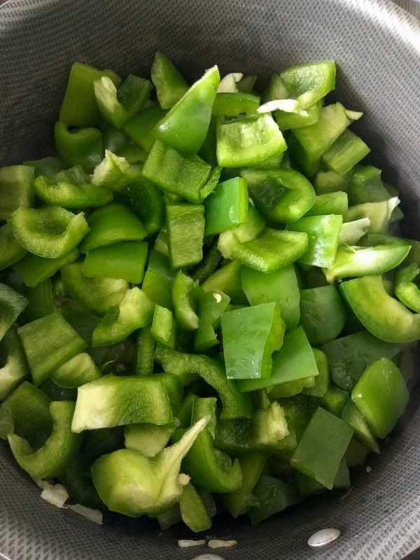Thank you Jim for your feedback. We have used approx. Two hundred Grams of medium capsicum and one hundred Grams of Onion for this recipe and this serves 4-5 people.