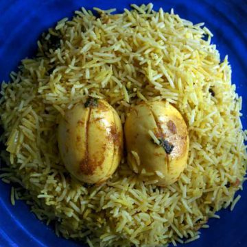 Egg Biryani or Fried Masala Egg Biryani. Biryani is a popular Indian/Pakistani dish with different states having different variations of Biryani recipe. Among these Hyderabadi dum biryani, Lucknowi Biryani, Mughlai Biryani etc. are popular variations. Today we bring you Fried Masala Egg Biryani which is one of the variations of biryani. This easy to cook recipe is made with a mixture of curry, rice and tossed with fried masala eggs.