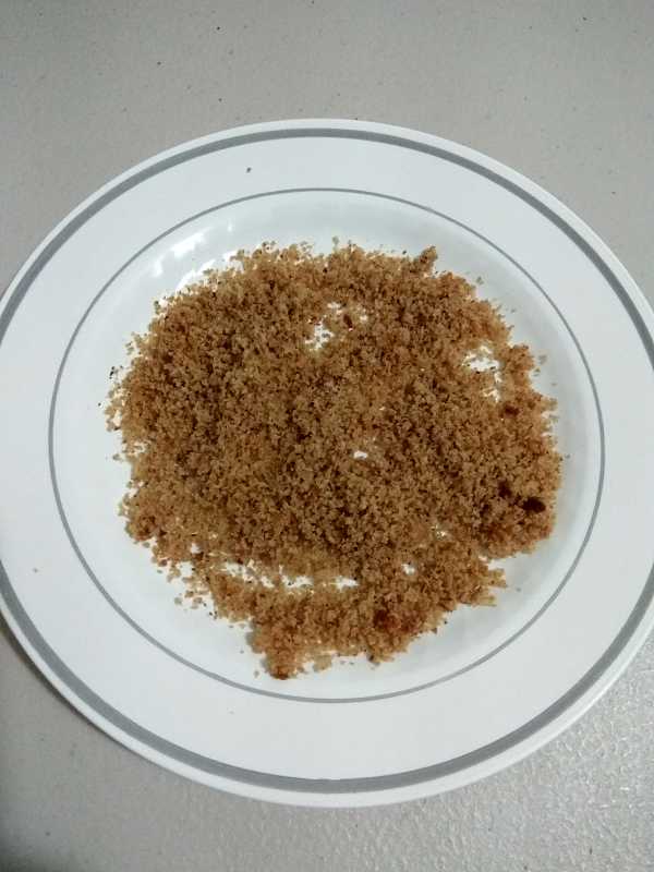 - Take a blender, add 2-3 slices of bread (with milk or whole wheat or brown) and pulse it for 3-4 minutes. You can also use bread crumbs which are readily available in the market. Take 2-3 tbsp of bread crumbs on a plate.