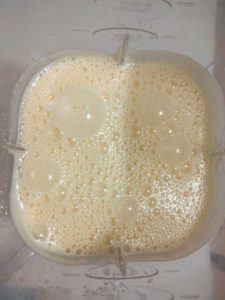 Add another 1/3rd of the flour mixture to the blender and blend again for few more minutes. We can see the flour is mixed well with eggs and butter. Add remaining flour and blend for 5 more mins. Add 50ml or more milk to adjust the batter consistency and blend for 1 or 2 mins.
