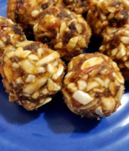 Take a little portion of the dry fruits mix and bind them as laddu.